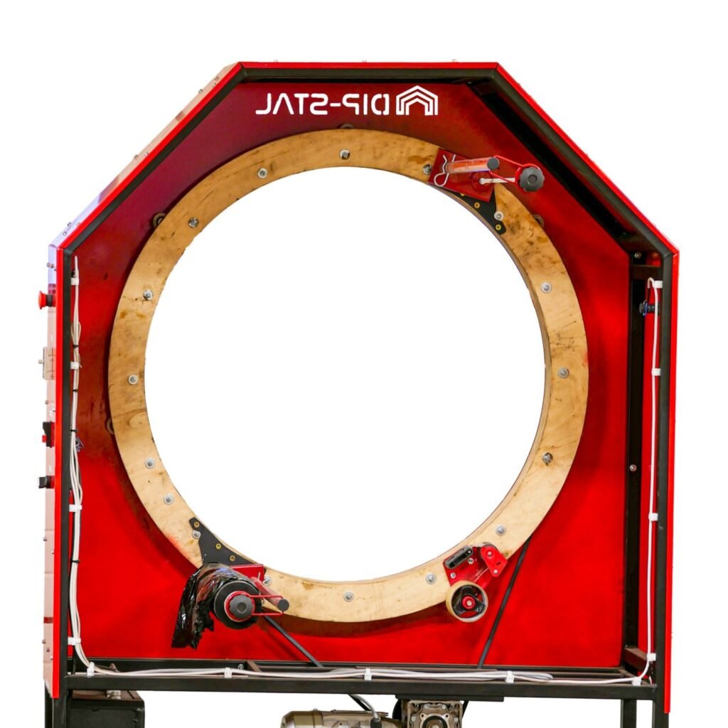 Owijarka jest wyposażona w obrotową obręcz, działającą w kilku różnych prędkościach oraz w dwóch